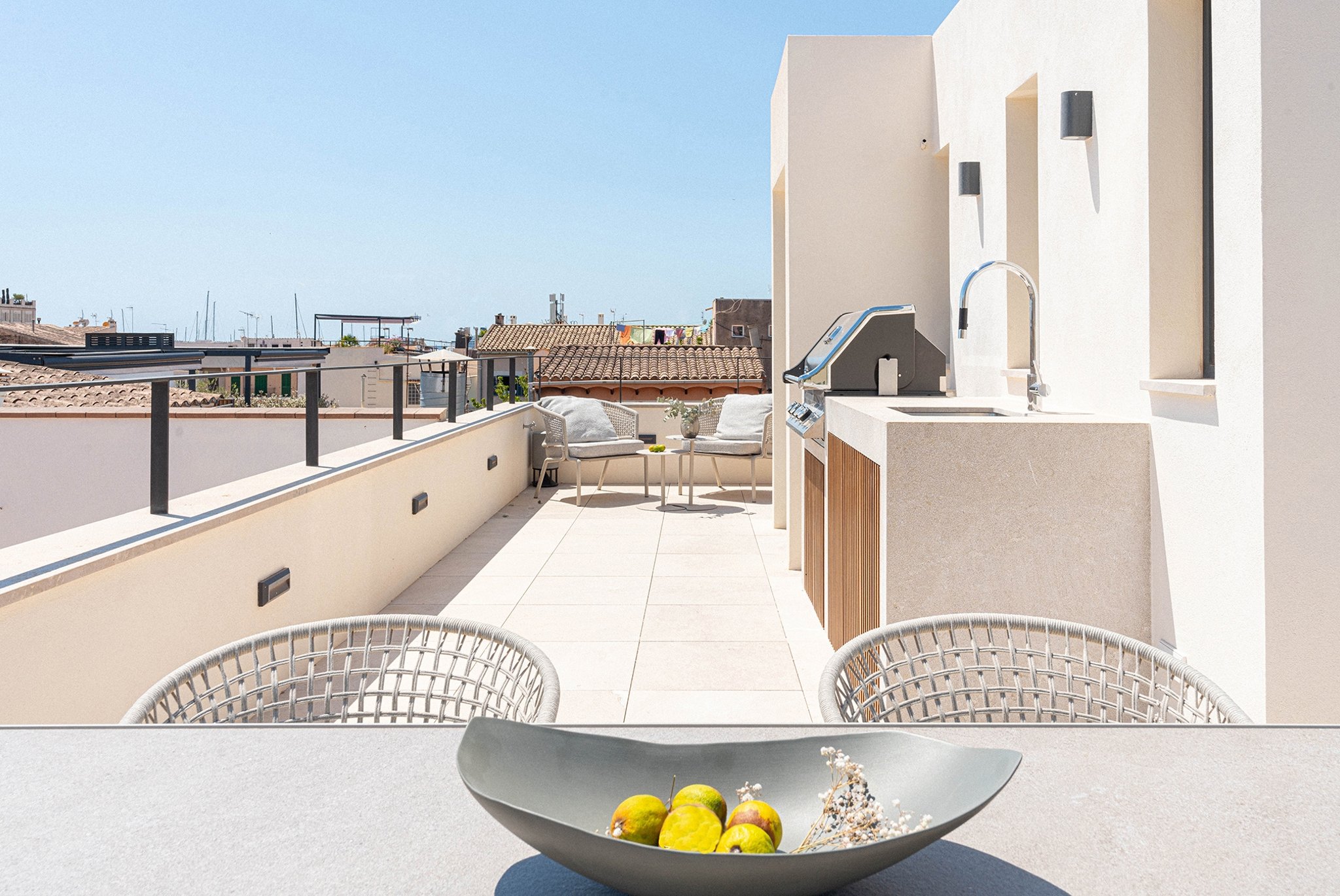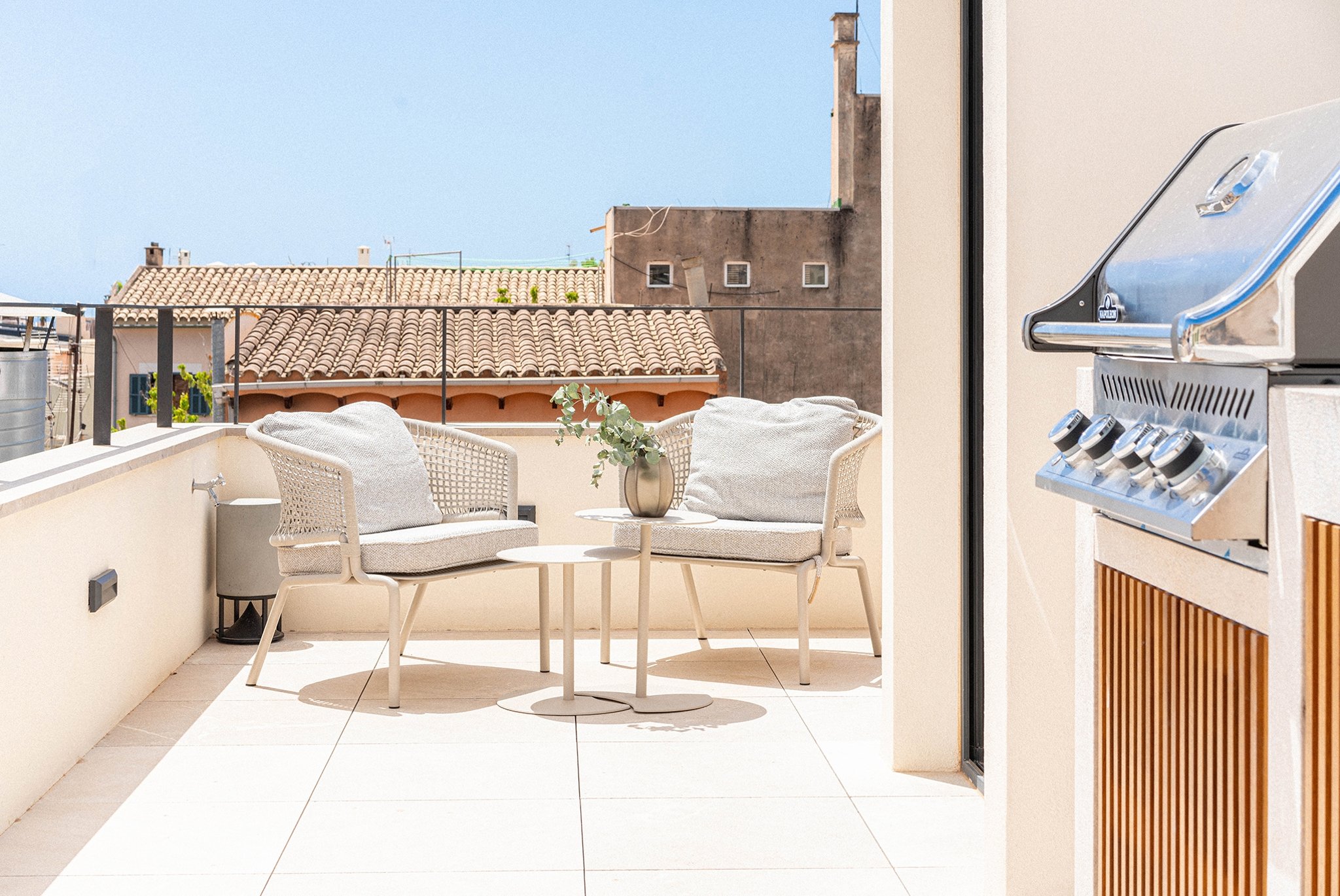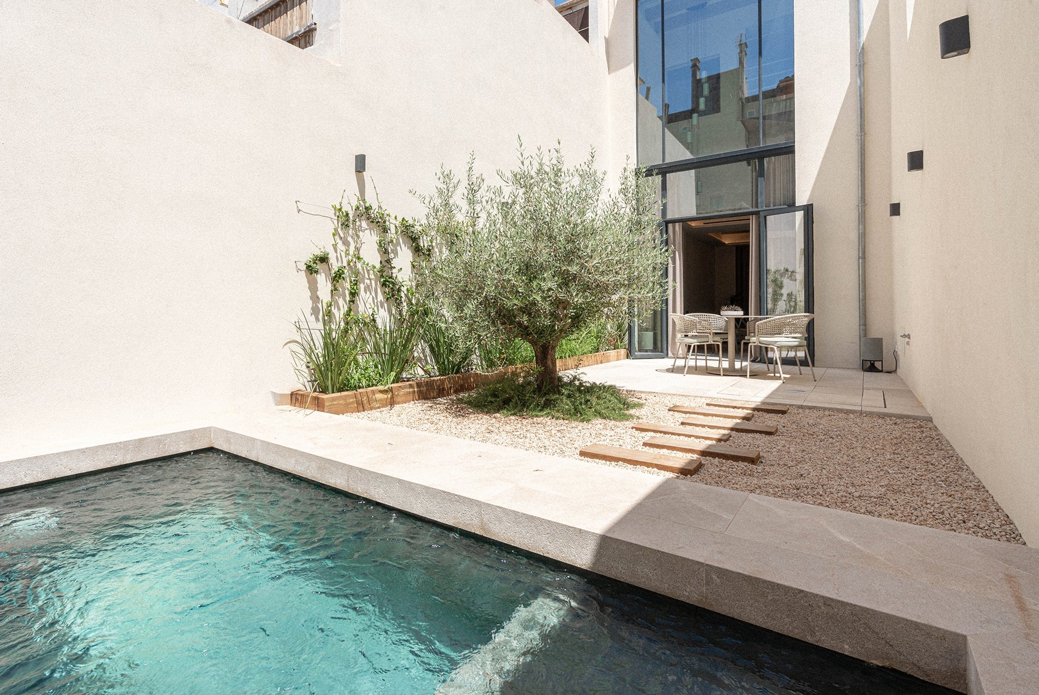 This property seamlessly combines original architecture with Mediterranean flair and modern functionality, creating an ideal space to live and enjoy. It has a living area of 123 m2 plus 60 m2 of terraces, including the pool. The living area is distributed over three floors, all accessible via a private lift. The ground floor has a fully fitted open plan kitchen and a spacious living and dining area that extends out to a 10 m² terrace and the pool. The main living area has floor to ceiling windows and is bathed in natural light, enhancing the sense of space and comfort. The first floor is designated to the main bedroom with dressing room and bathroom. The second floor has two well-appointed bedrooms, each accompanied by their own bathroom. The top floor of this townhouse has a 30 m2 terrace. This magnificent space is ideal for hosting gatherings, enjoying family time, or indulging in some quiet relaxation under the stars.