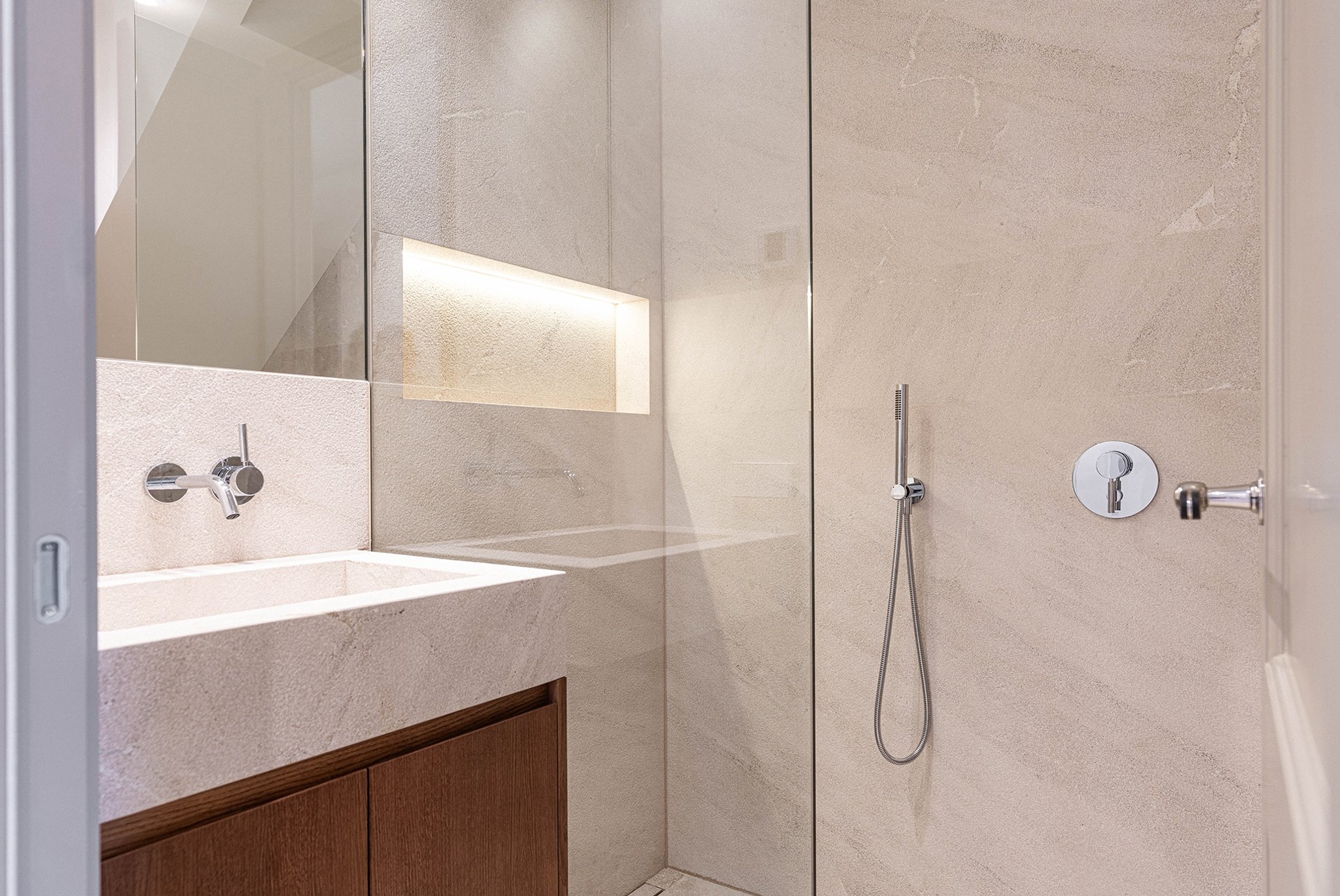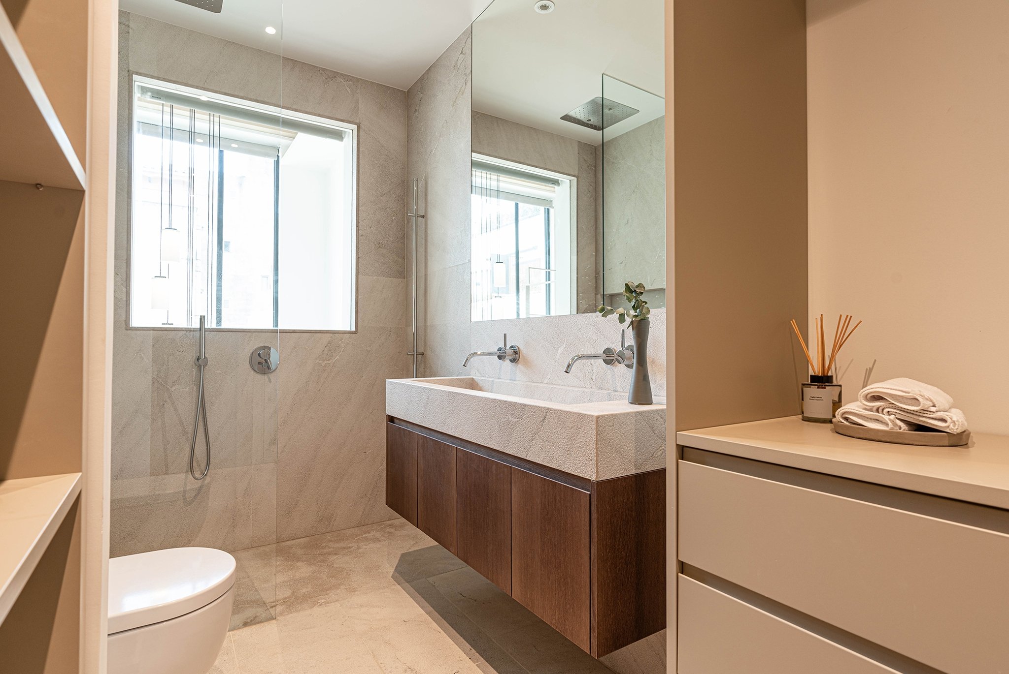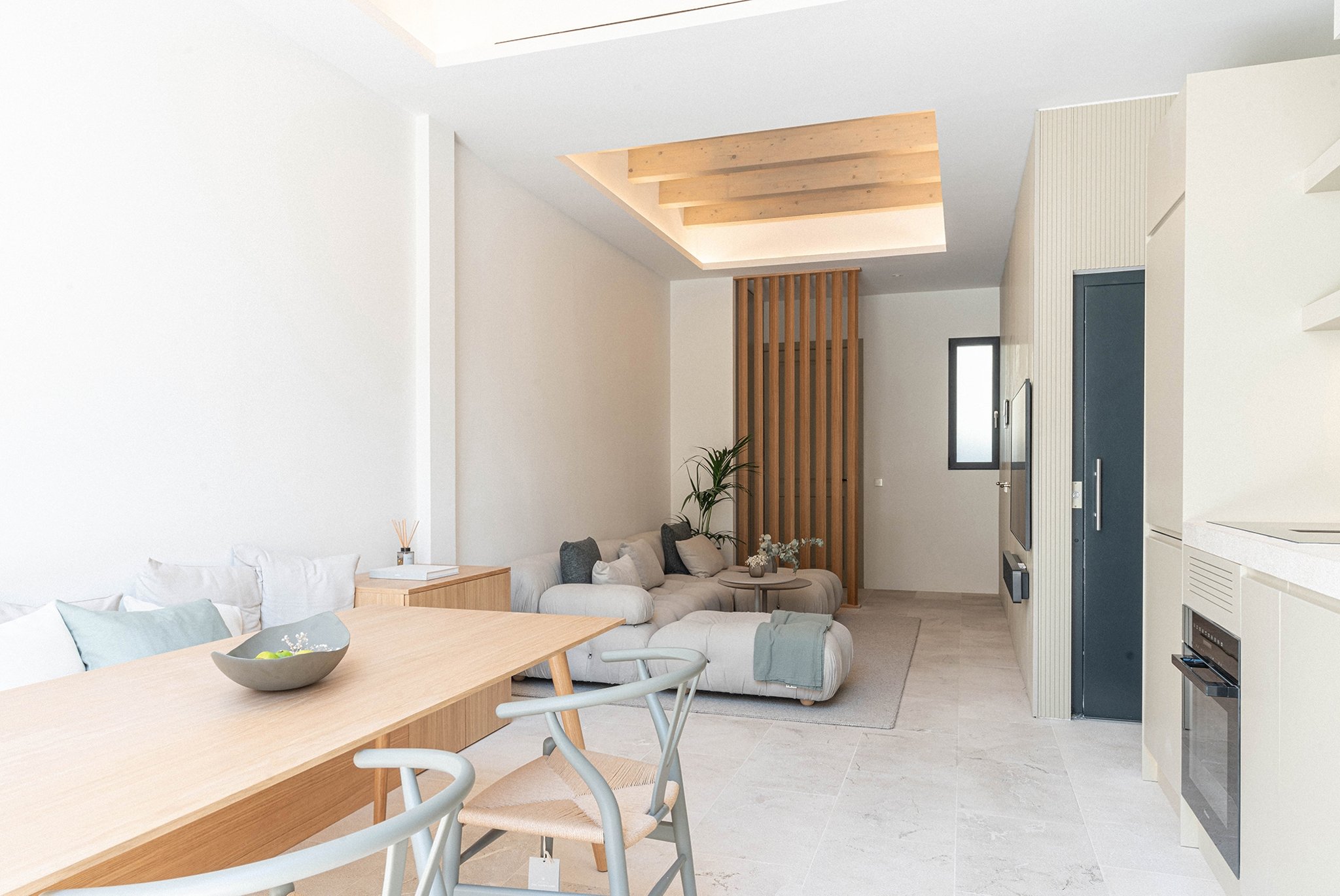 This property seamlessly combines original architecture with Mediterranean flair and modern functionality, creating an ideal space to live and enjoy. It has a living area of 123 m2 plus 60 m2 of terraces, including the pool. The living area is distributed over three floors, all accessible via a private lift. The ground floor has a fully fitted open plan kitchen and a spacious living and dining area that extends out to a 10 m² terrace and the pool. The main living area has floor to ceiling windows and is bathed in natural light, enhancing the sense of space and comfort. The first floor is designated to the main bedroom with dressing room and bathroom. The second floor has two well-appointed bedrooms, each accompanied by their own bathroom. The top floor of this townhouse has a 30 m2 terrace. This magnificent space is ideal for hosting gatherings, enjoying family time, or indulging in some quiet relaxation under the stars.