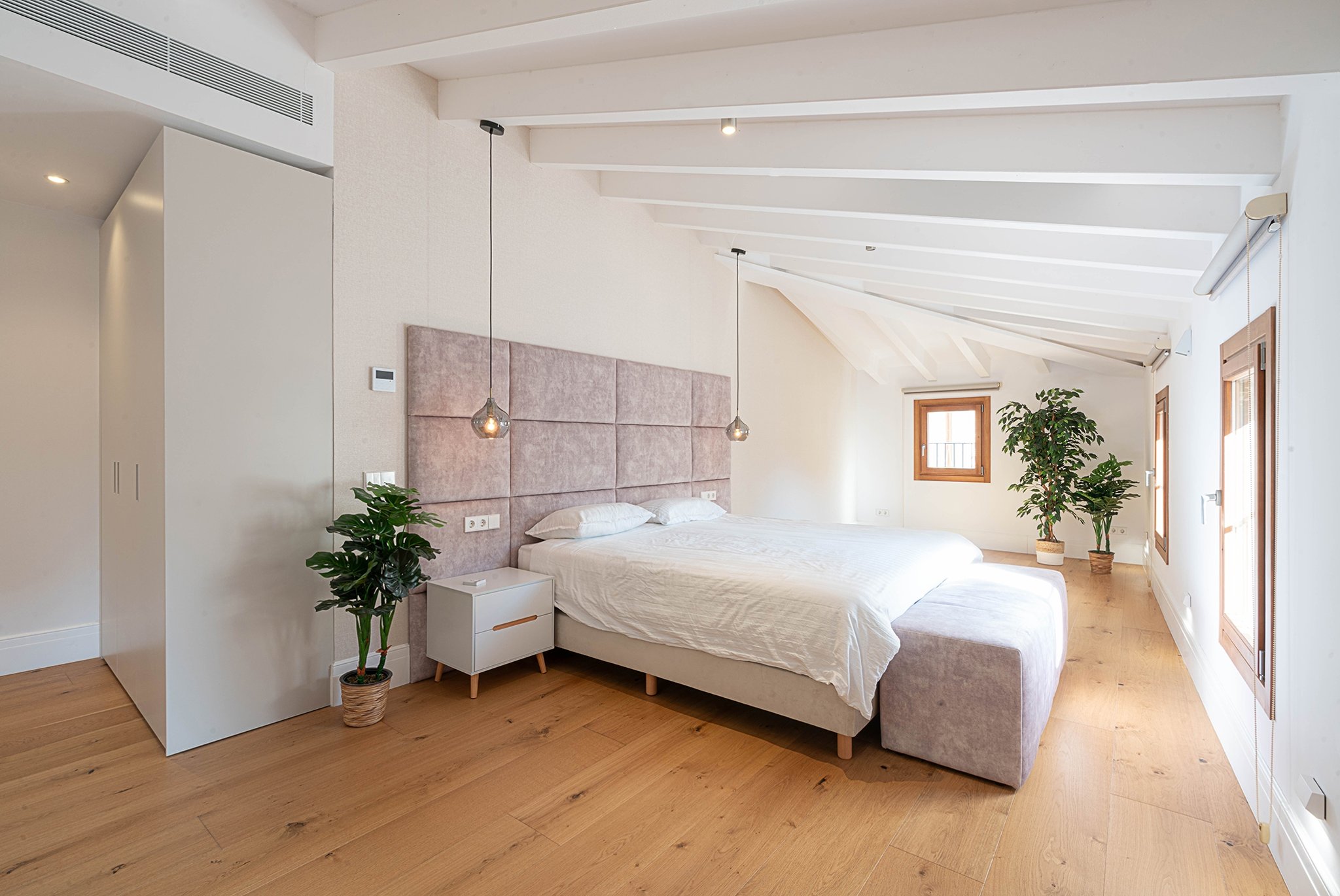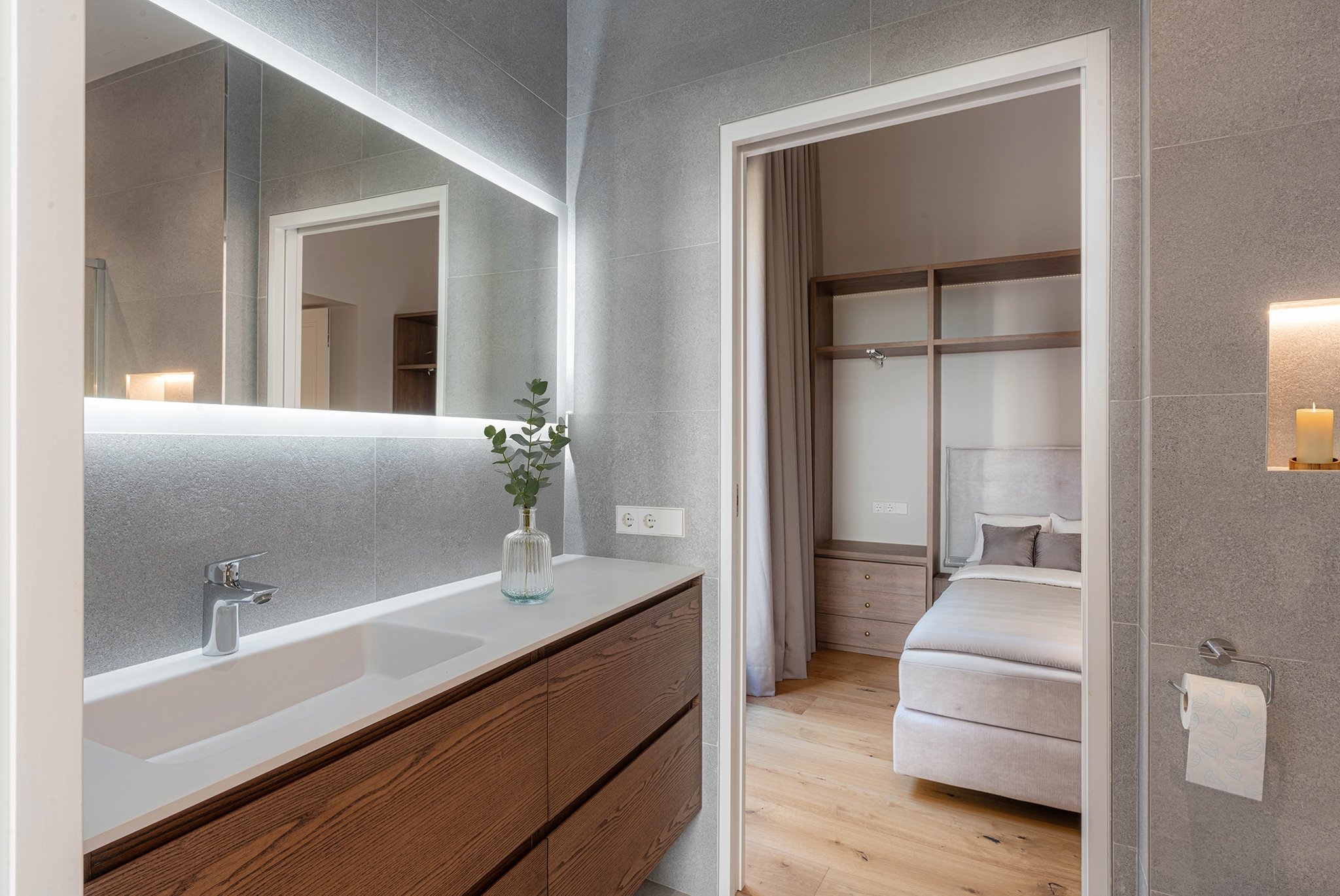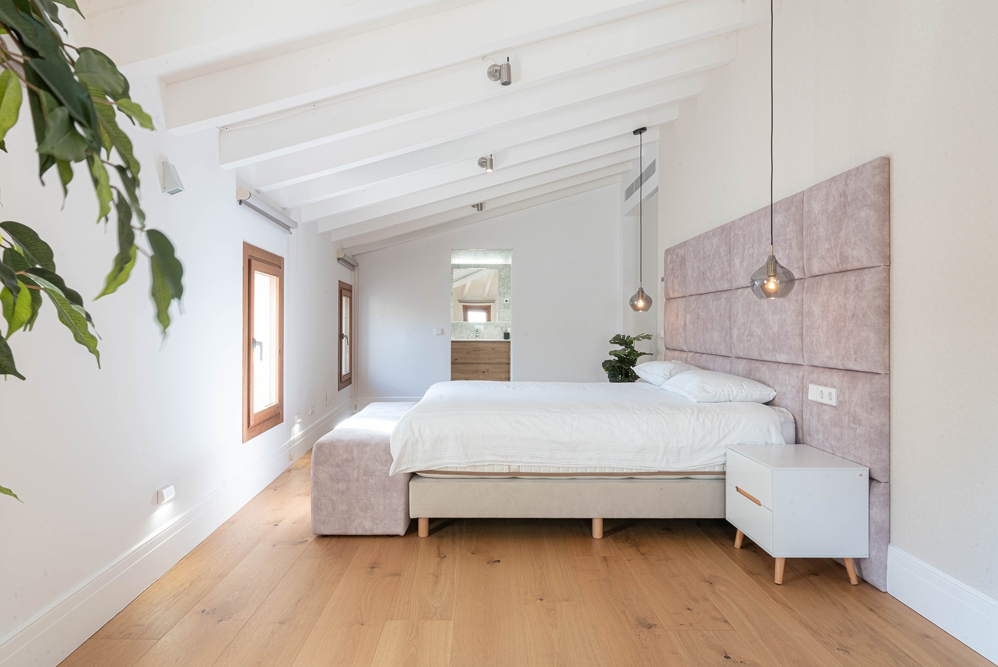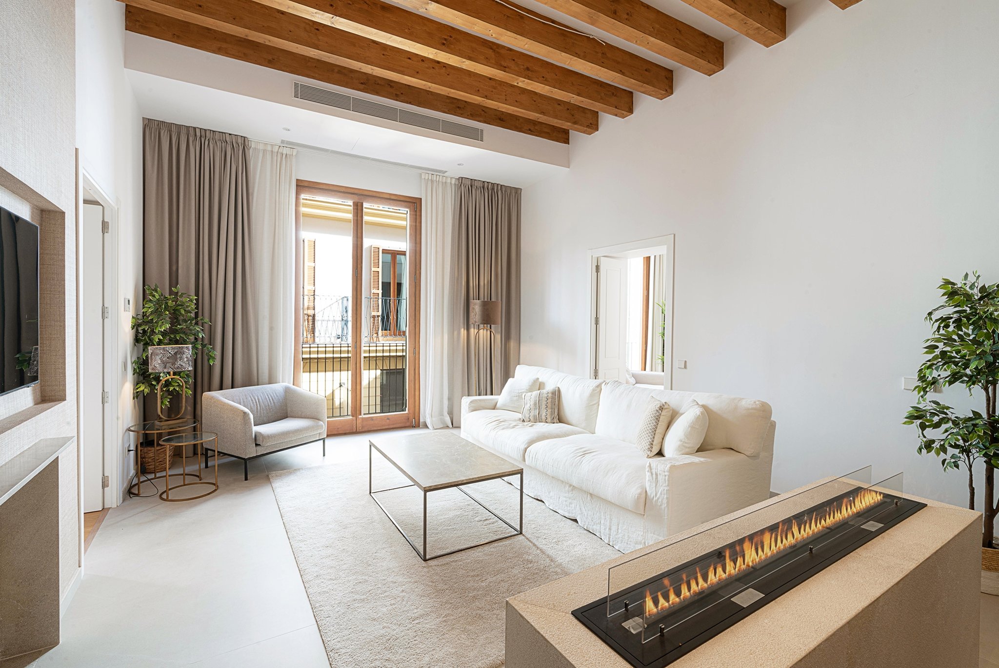 A lounge leads up to the private 40 m² rooftop terrace, where you can enjoy sun all day, space for outdoor cooking, relaxation, and stunning views of the cathedral and Palma Bay.