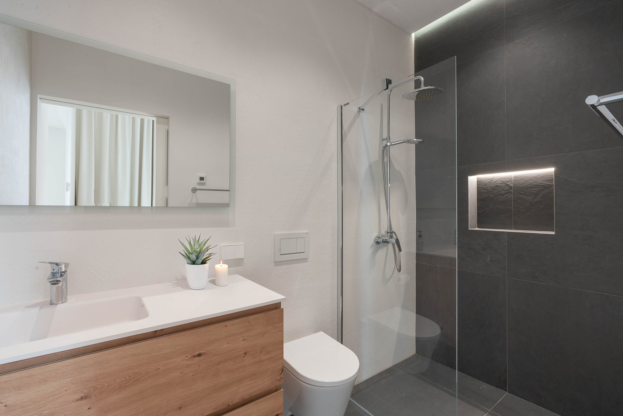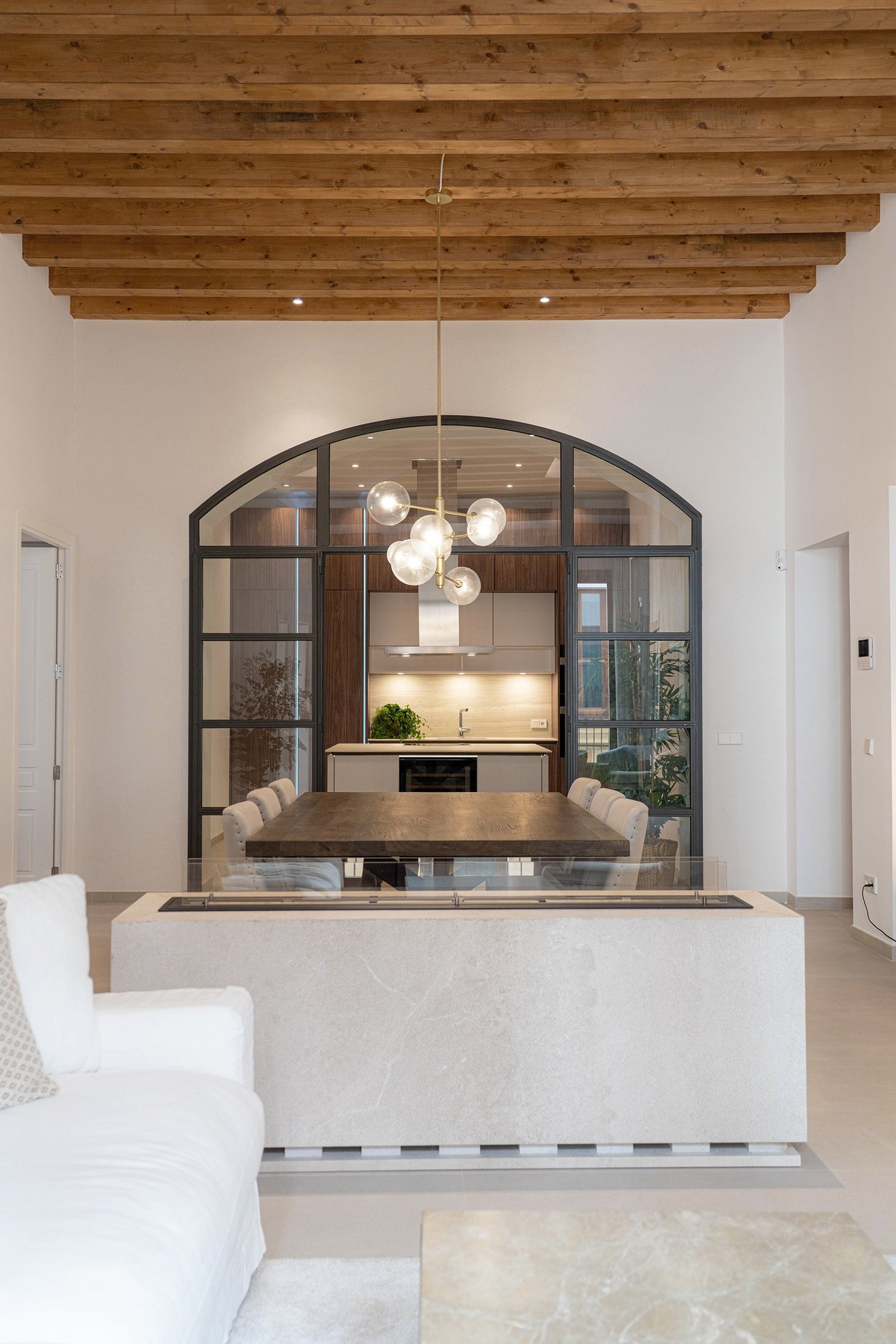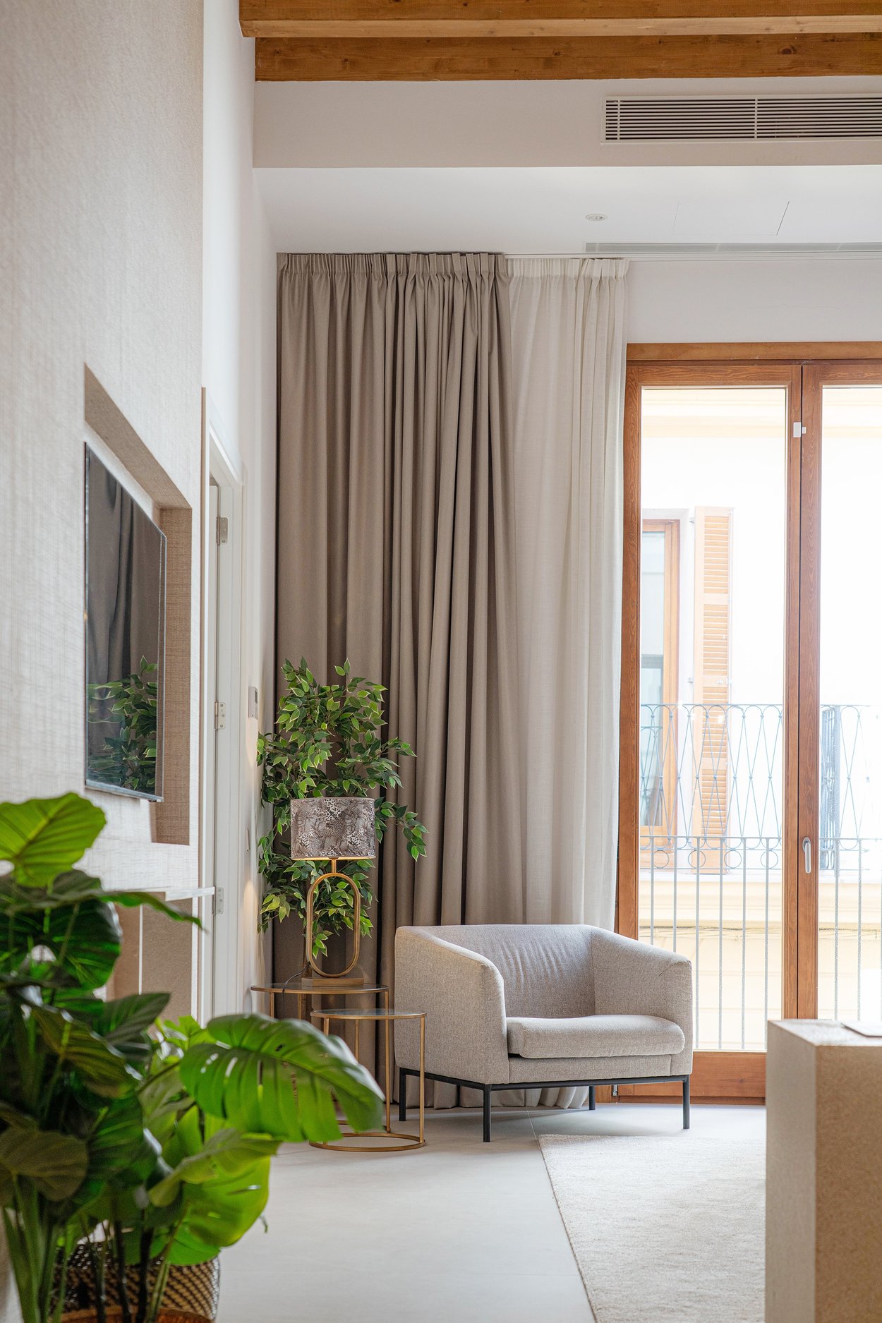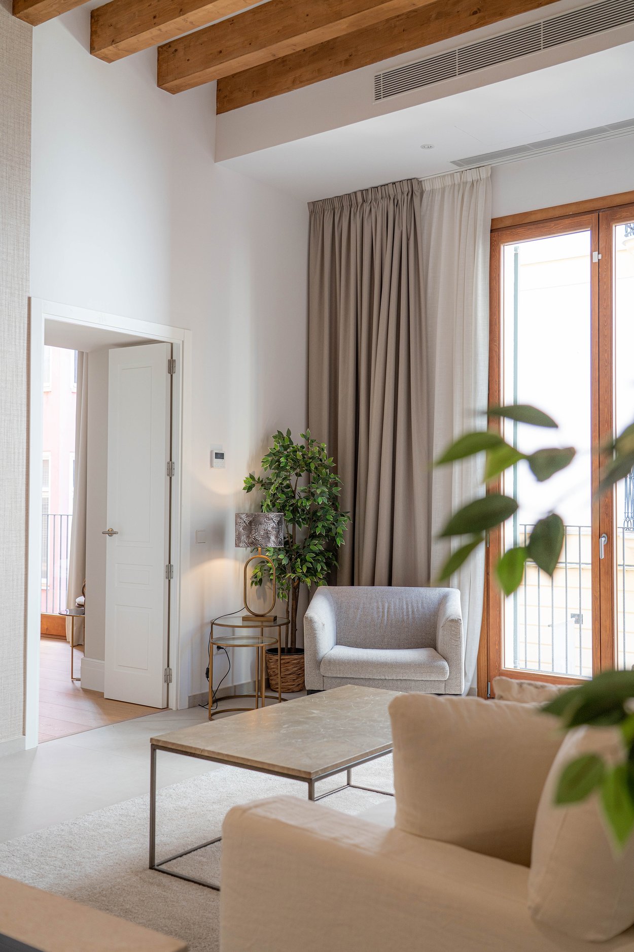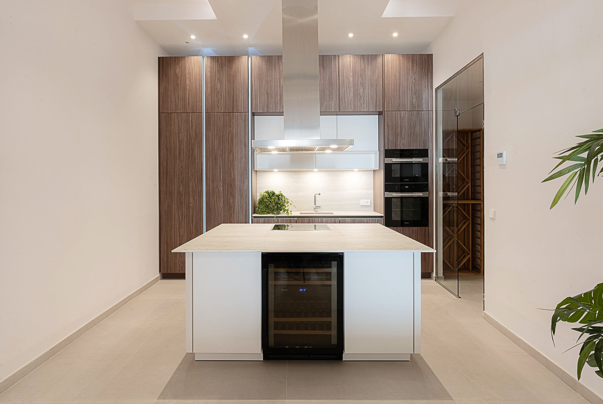 A lounge leads up to the private 40 m² rooftop terrace, where you can enjoy sun all day, space for outdoor cooking, relaxation, and stunning views of the cathedral and Palma Bay.