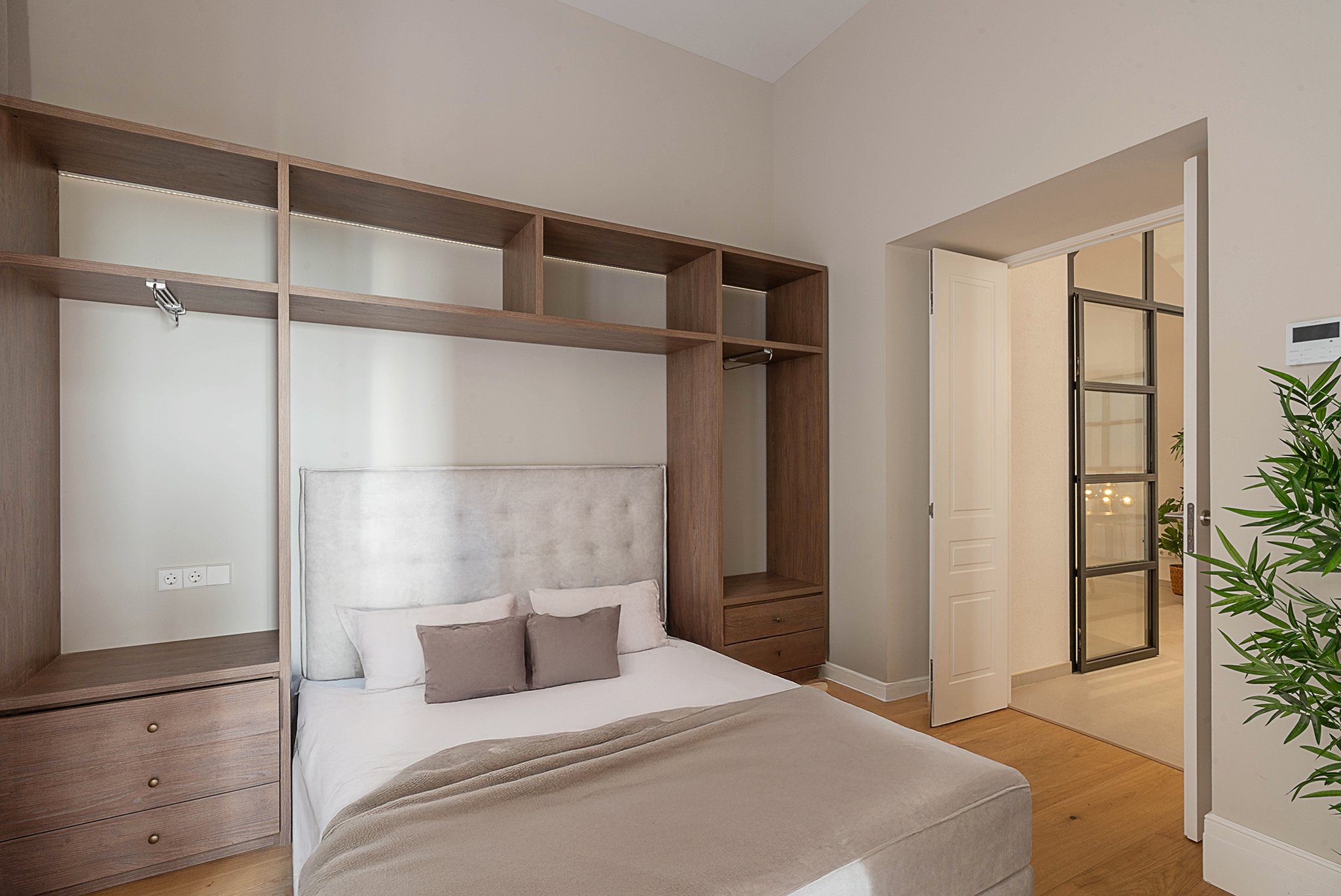 Behind the grand wooden doors of a palatial building awaits an extraordinary duplex with a private rooftop terrace. Recently fully renovated, the residence combines timeless elegance with modern comfort and a cohesive design where exclusive materials and harmonious tones meet. The 4.5-meter-high ceilings, abundant natural light, and custom-built details create a sense of spaciousness and refined elegance.