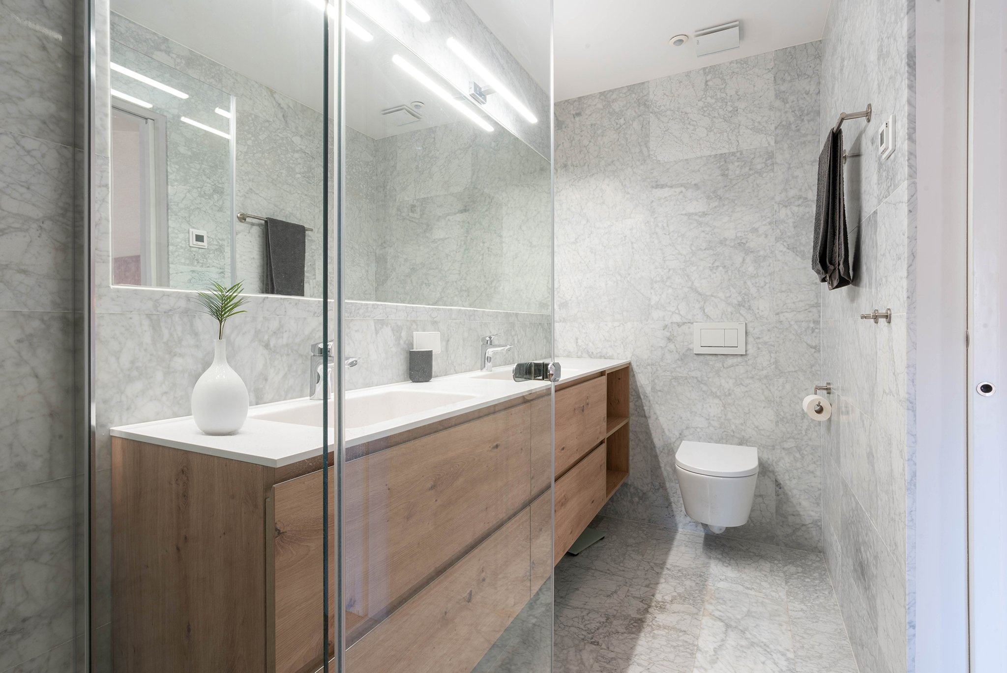 The 292 m² living area is distributed across five spacious bedrooms, four modern bathrooms, two guest toilets and a Siematic kitchen with a wine room, all crafted with the same meticulous attention to detail as the rest of the home. The master suite includes a walk-in closet and an en-suite bathroom. To ensure comfort the first floor of the flat is reached by a lift that takes you directly into this impressive home.
