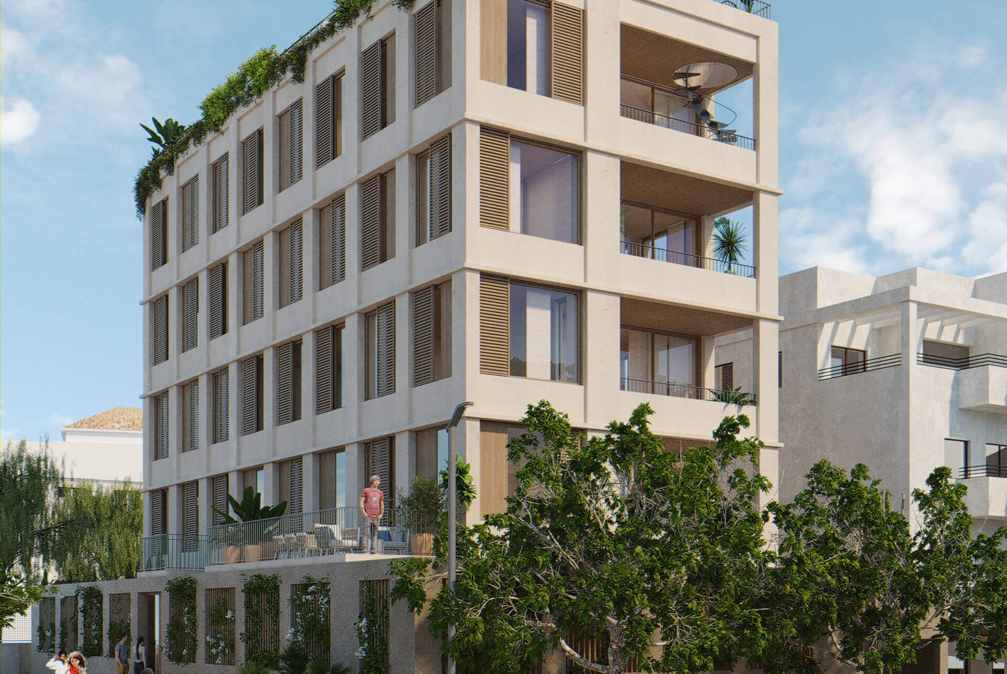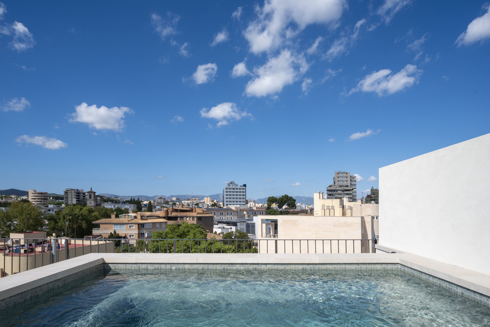 The building consists of 10 apartments divided over 5 levels with a community pool and garden. All apartments have plenty of natural light thanks to the floor to ceiling doors and windows leading out to the balconies. There is underfloor heating throughout the apartments, oak carpentry, porcelain micro-cement floors and appliances of high quality and design kitchens and bathrooms with top materials.