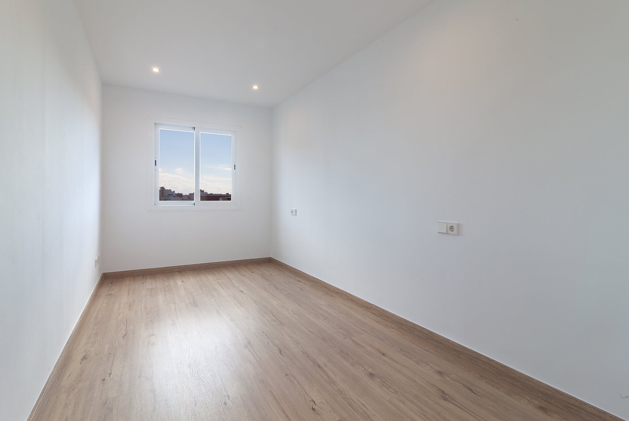 The apartment was renovated in 2017 and the living space of 57m2 was divided into two bedrooms, a bathroom and a semi-open kitchen with living room. It is from the living room that the exit to the large 52 m2 terrace is. A terrace that is created for enjoyment and socializing with sunlight all day long as well as amazing views of Palmas rooftops. In addition, there is a storage room that could be tuned into an extra bedroom. The breathtaking dawn over Palma can be experienced from the second terrace of 13 m2. Both terraces as well as the apartment have parquet floors and the house has an elevator. Another great advantage is that Palma Tennis club as well as central Palma are within 10 minutes walking distance.