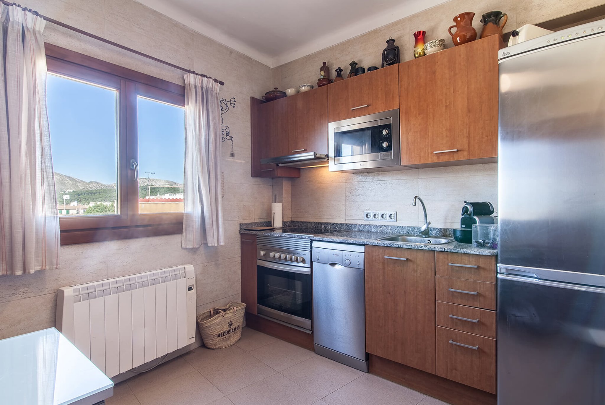 This is a bright duplex apartment in an older beautiful building with a nice renovated facade. We find it on a cozy street in Alcudia, 30 seconds from the center of the village and Plaça de la Constituició.