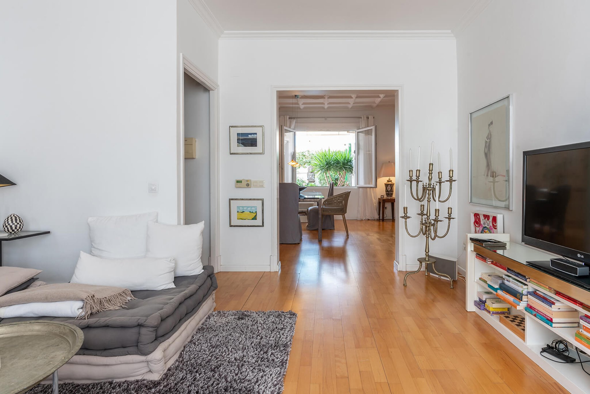 This bright, renovated apartment with only two other neighbors is located on a quiet street in El Terreno, a stone's throw from Bellver Park and Paseo Maritimo.