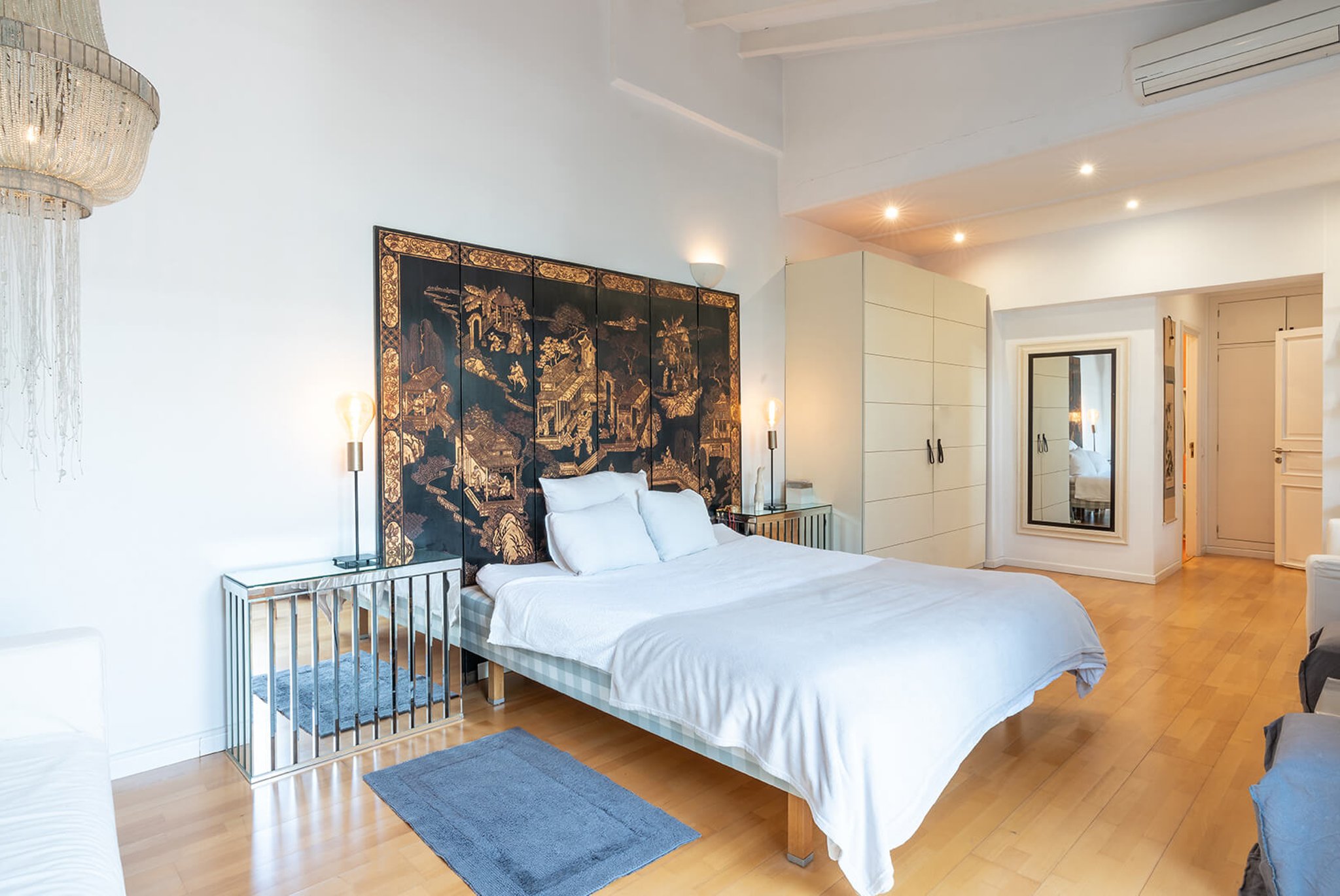 The living area of about 127 m2 is divided into 2 bedrooms and 2 bathrooms en-suite, a spacious living room with large windows and a fully equipped kitchen with an open floor plan in combination with a dining area. From the master bedroom which consists of a loft with bathroom en-suite, you reach the apartment's oasis, the terrace of about 27 m2 which is partially covered. On the wonderful terrace you will find an outdoor kitchen and plenty of space for socializing and to enjoy both the sun and the shade throughout the year. There are also two storage rooms, one of which is used as a laundry room. An underground parking space and another large storage room is included in the price. The apartment has recently been renovated and maintains a high standard.