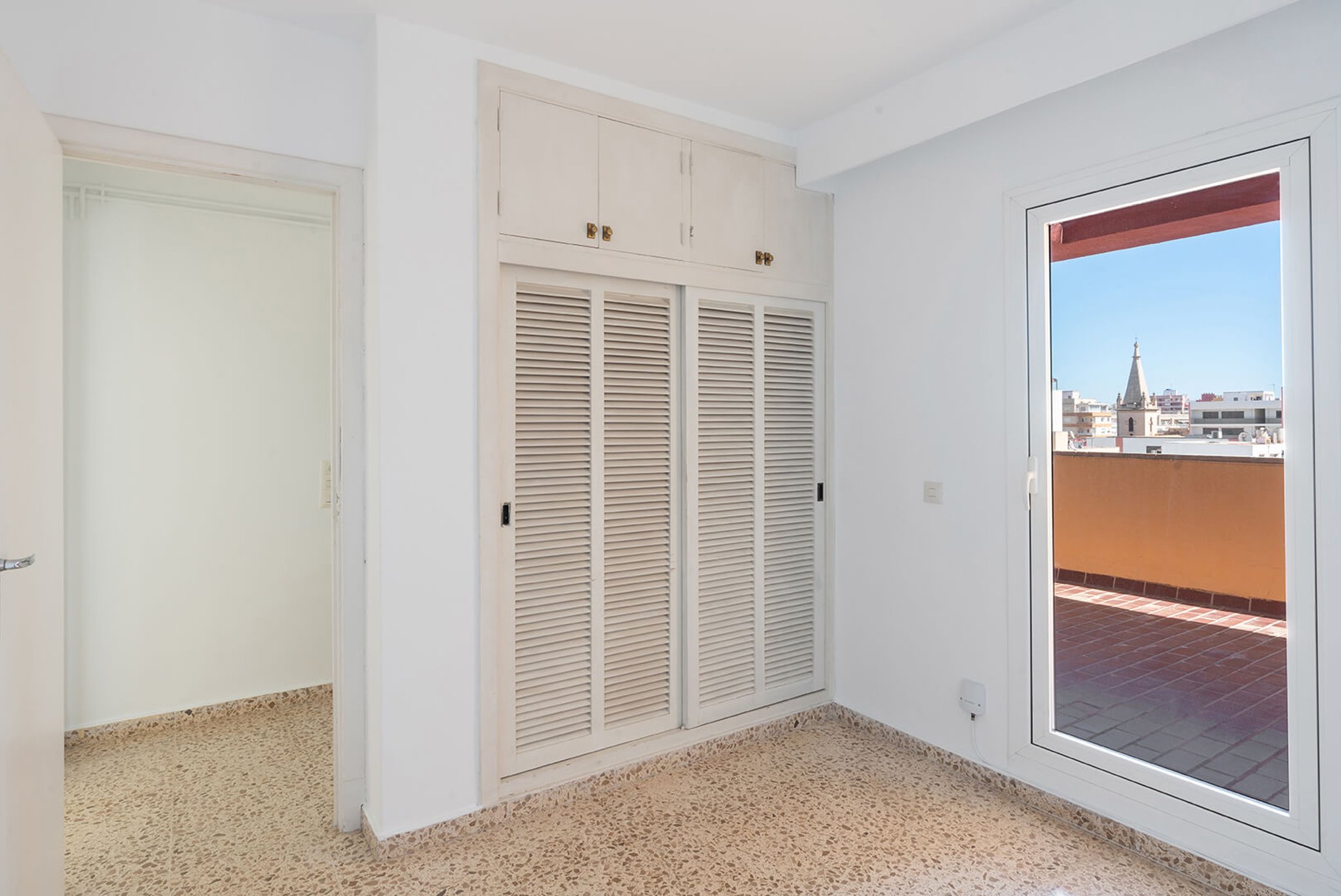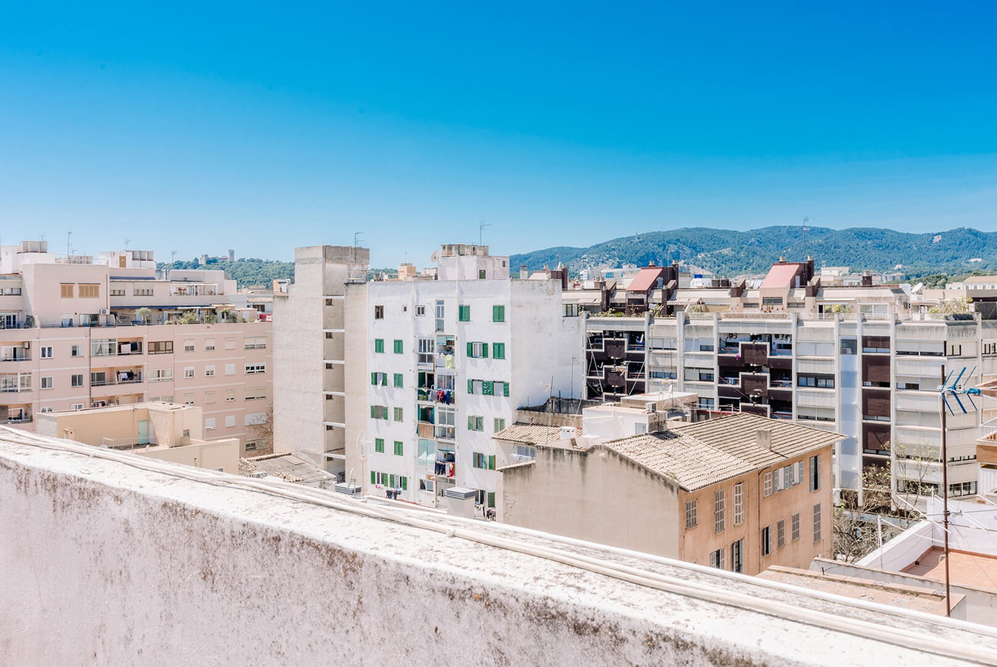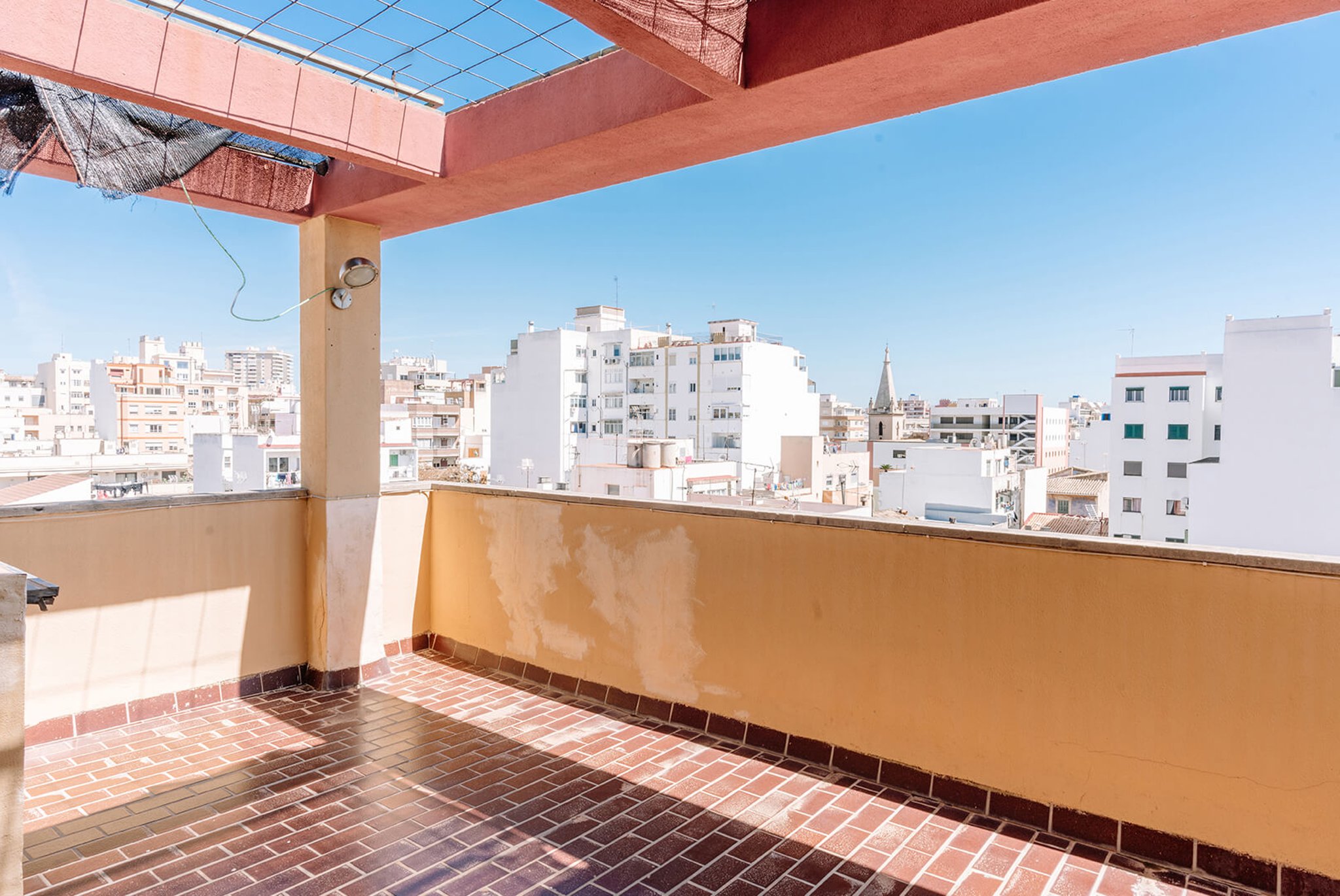 The apartment covers the top floor of a building of seven floors and two entrances. This home has several terraces, 4 bedrooms, 3 bathrooms, kitchen and living room on the entrance level. One level up there is an additional bedroom / storage / office with another bathroom. The apartment is in need of a renovation but has incredible potential!